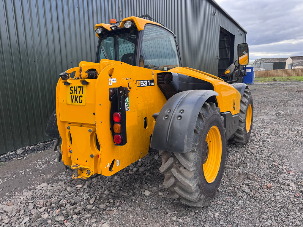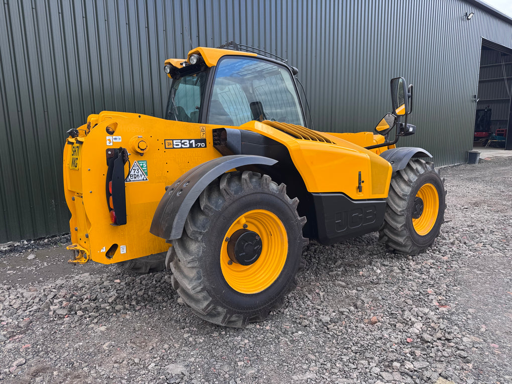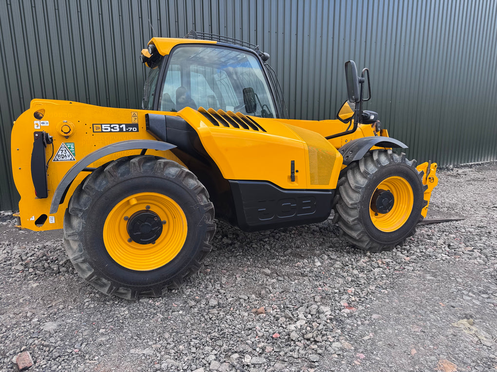 JCB 531-70. Year 2021. 9307 hours. Turbo. Air conditioning. Work lights and beacon. Well serviced and maintained. Recent new tyres. 1 owner from new