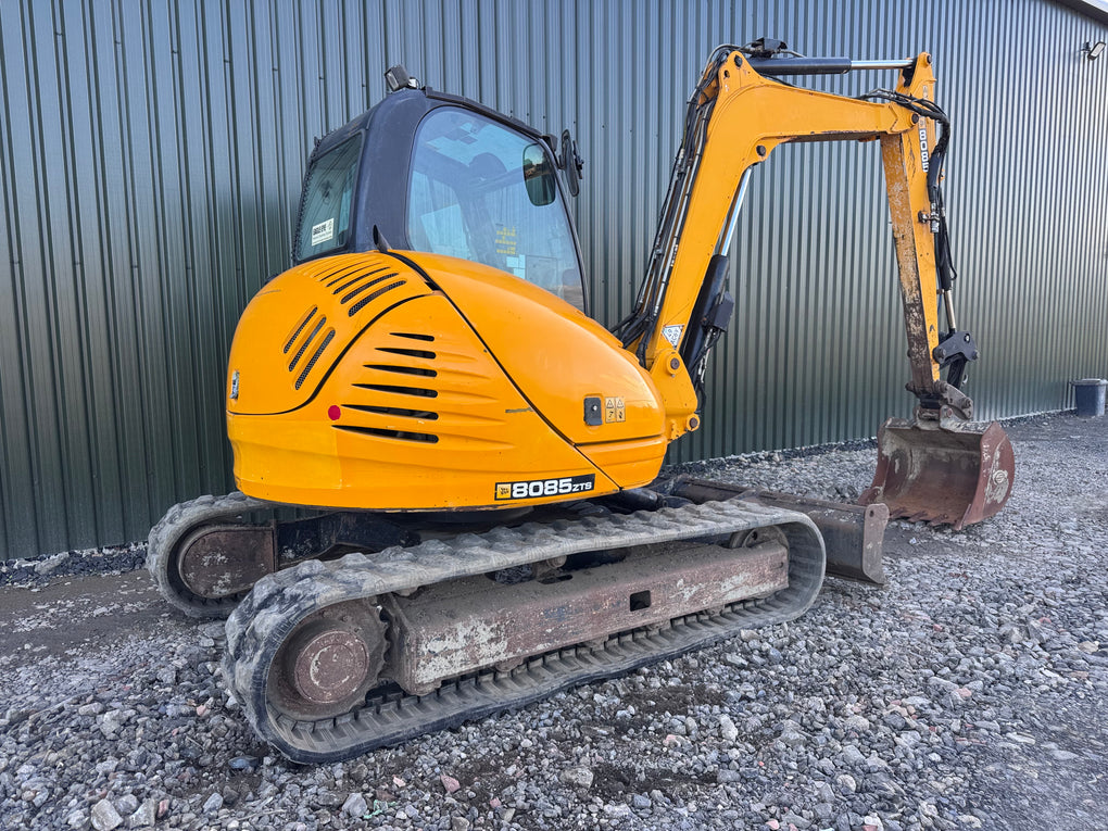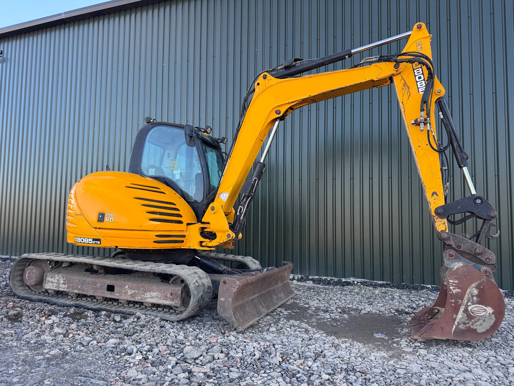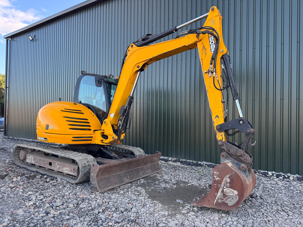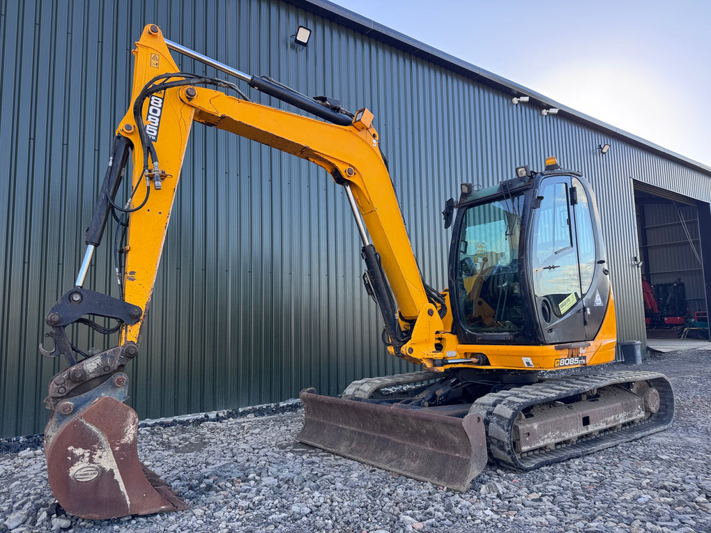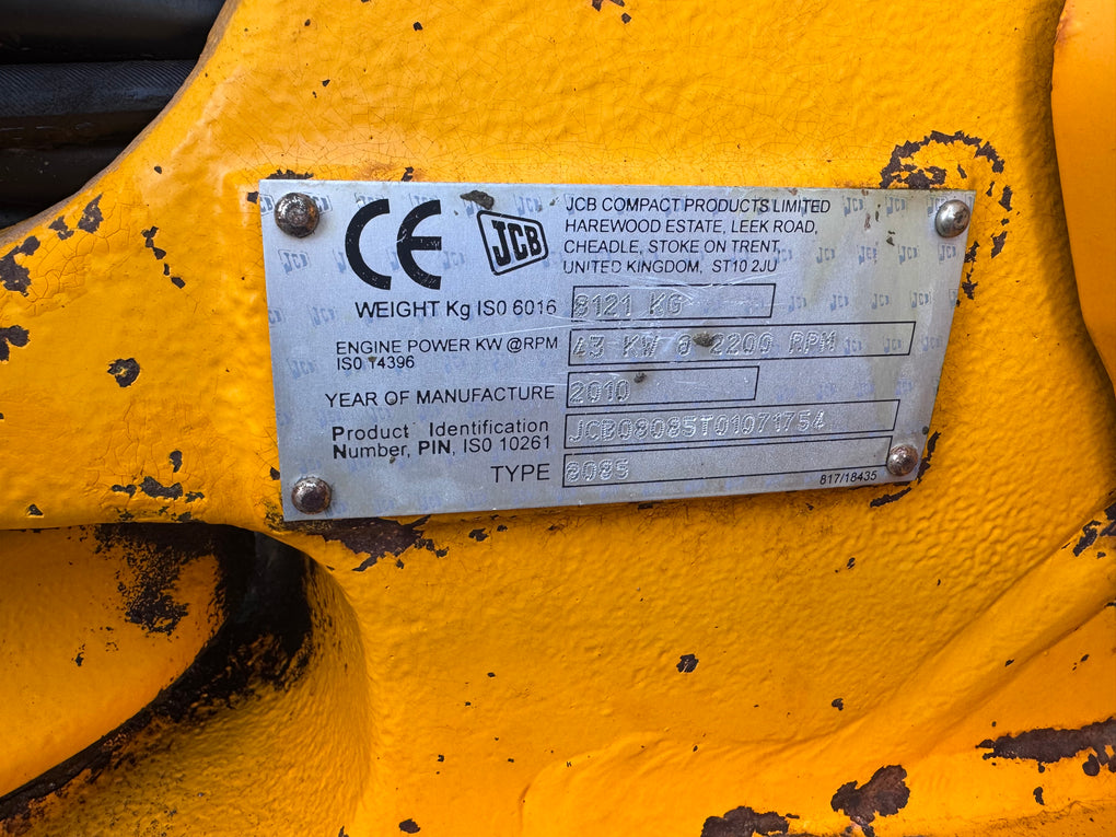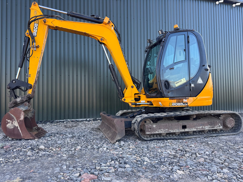JCB 8085. Year 2010. 9129 hours. Safety valves. Piped for hammer. Quick hitch and bucket. Work lights and beacon. Good undercarriage