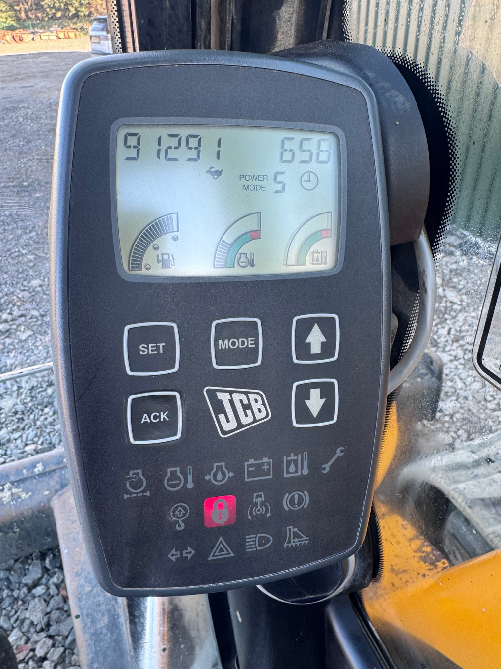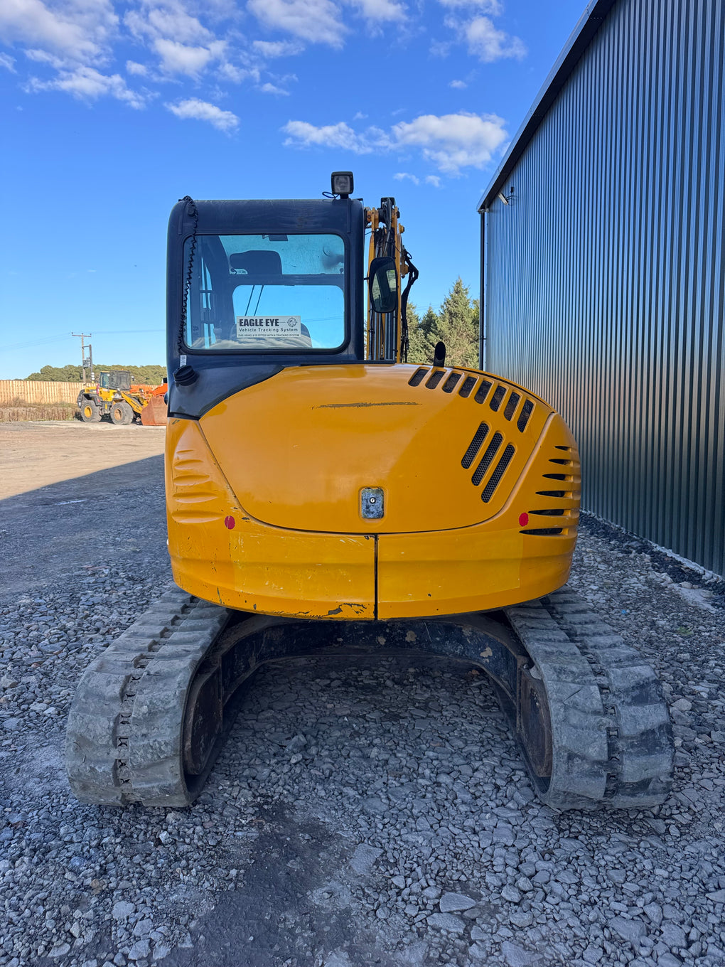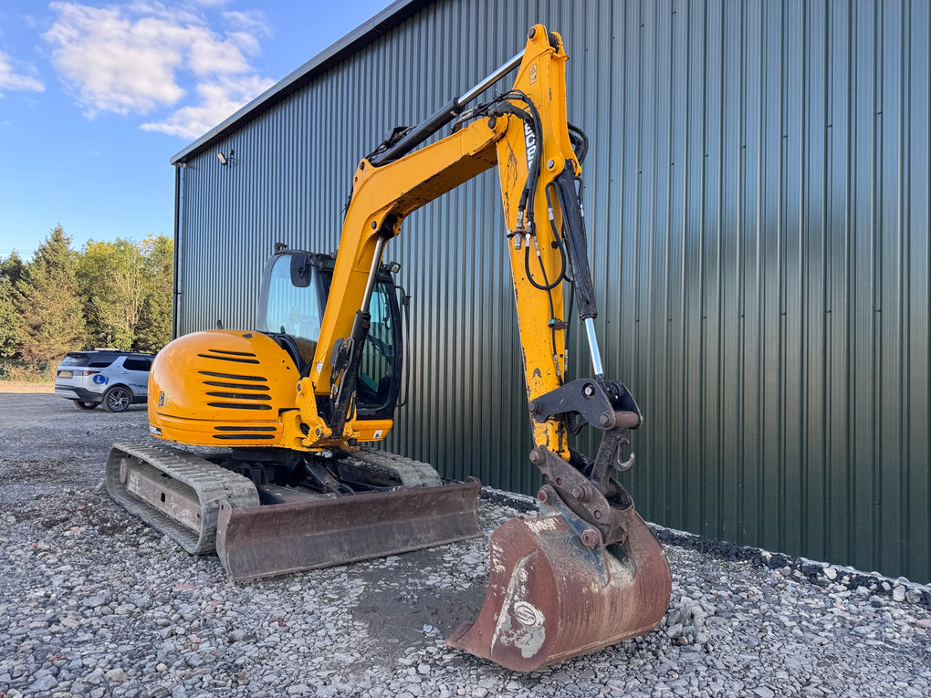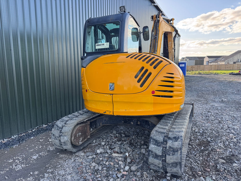 JCB 8085. Year 2010. 9129 hours. Safety valves. Piped for hammer. Quick hitch and bucket. Work lights and beacon. Good undercarriage
