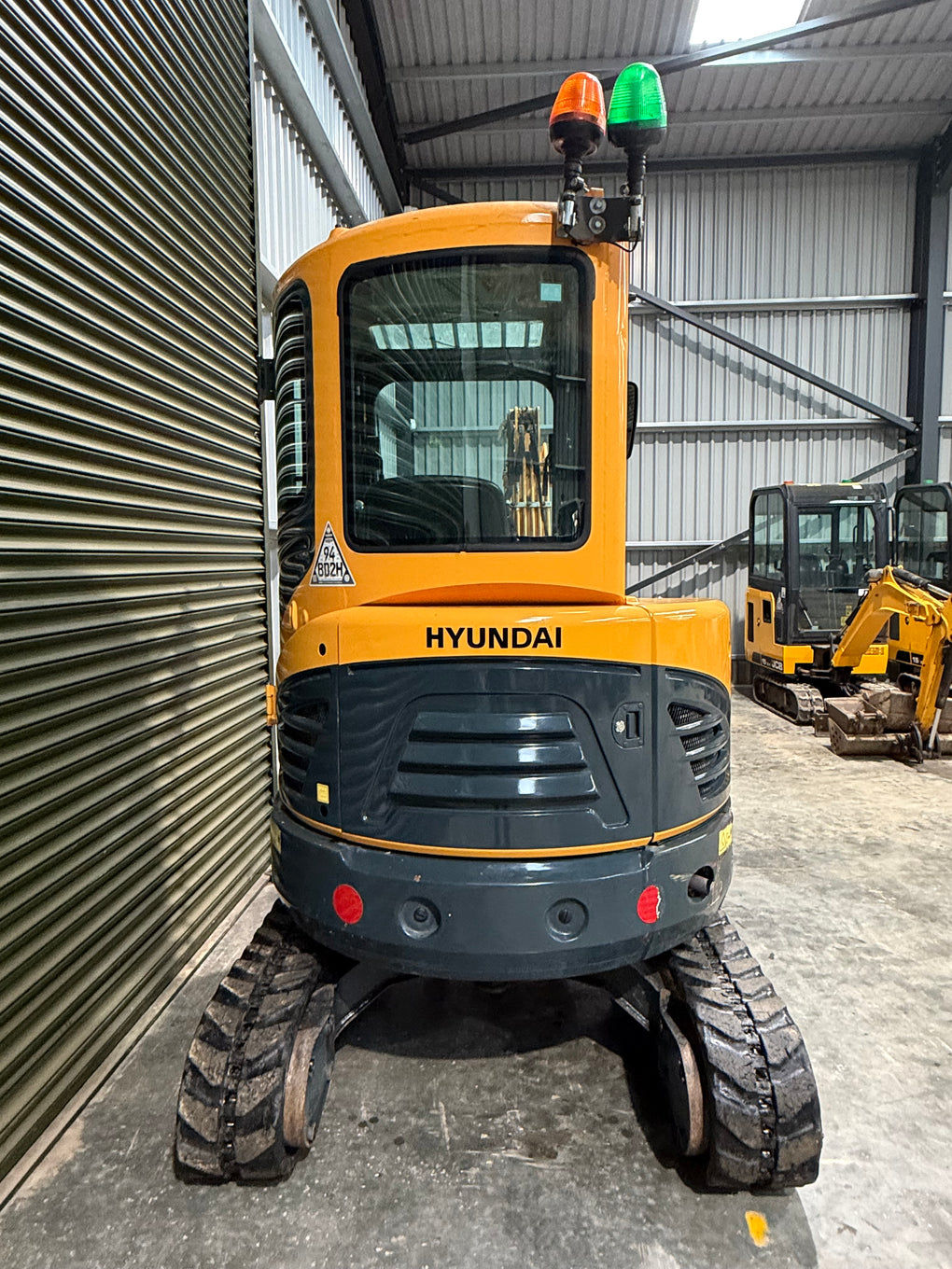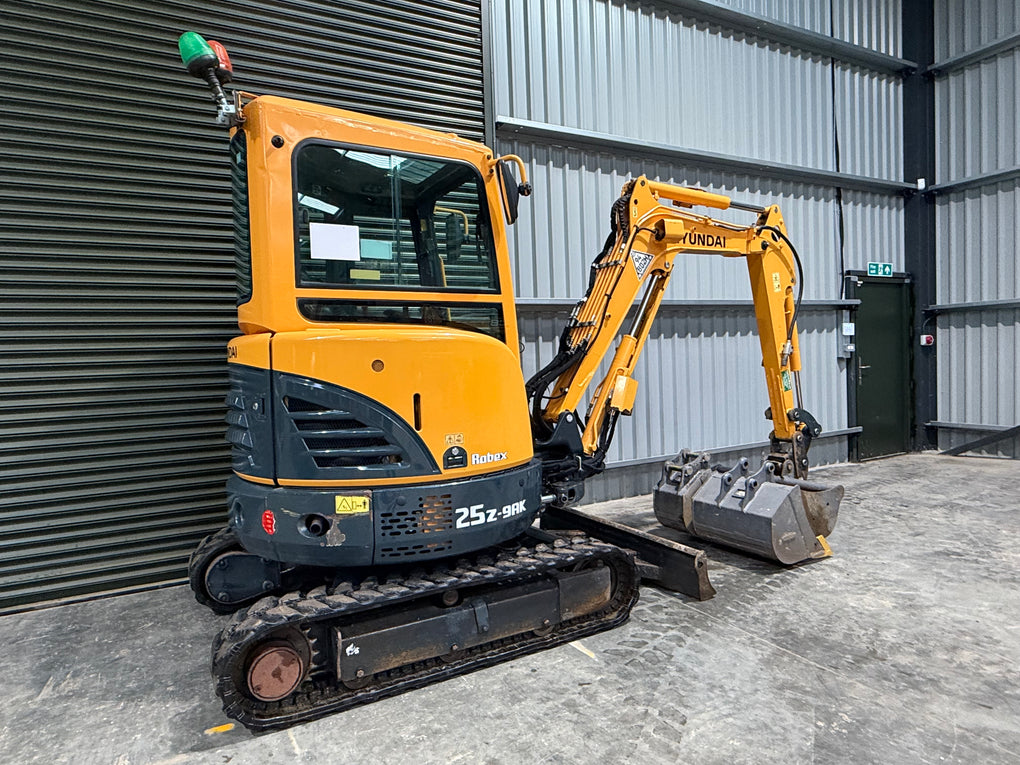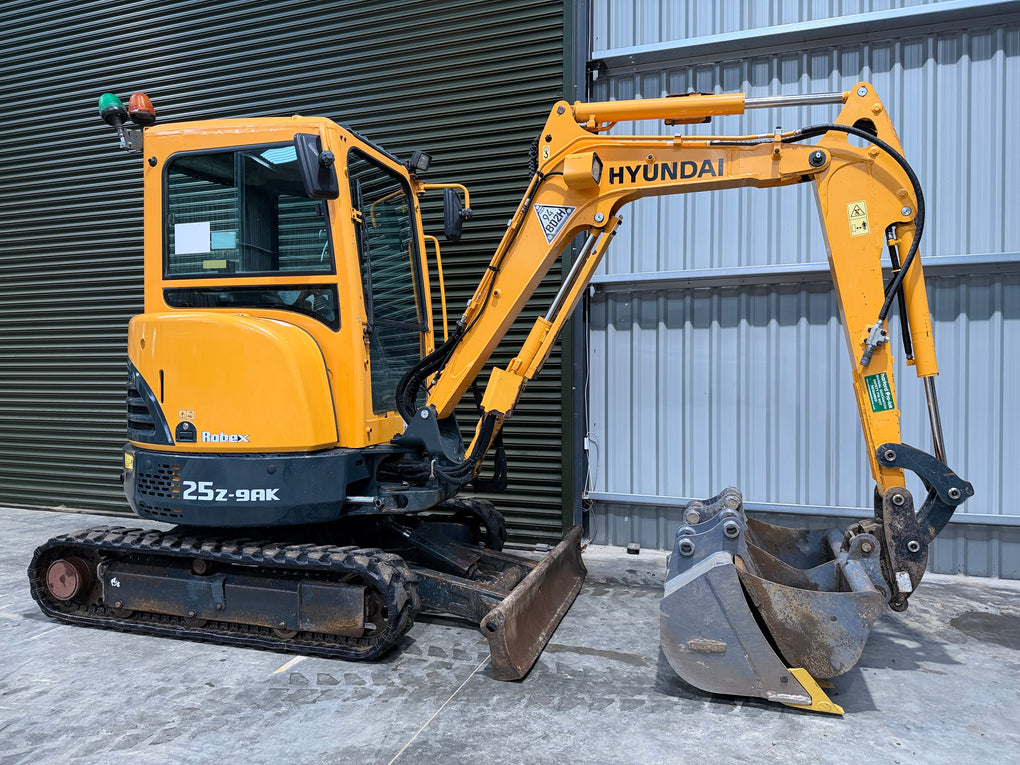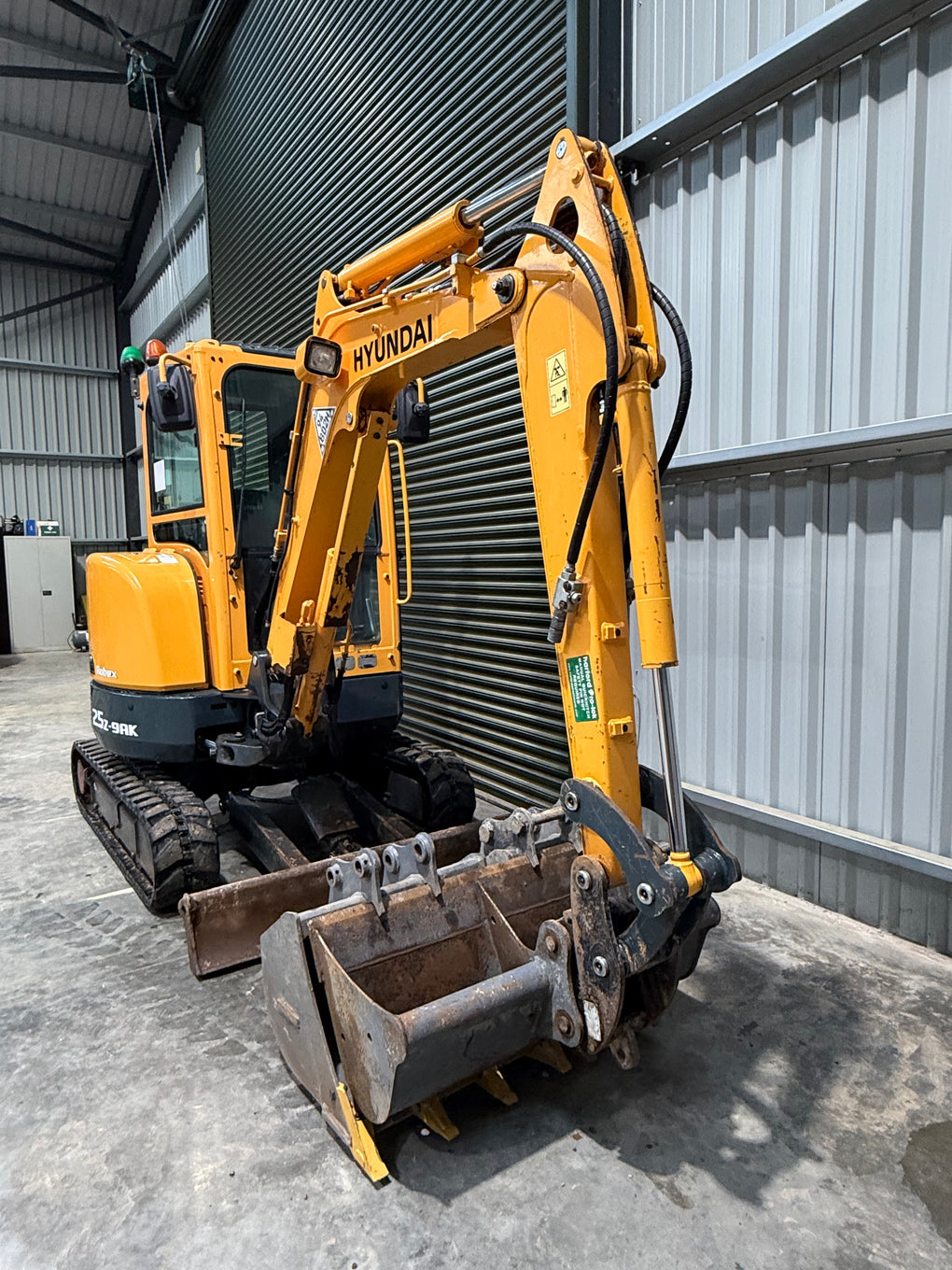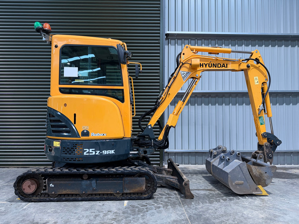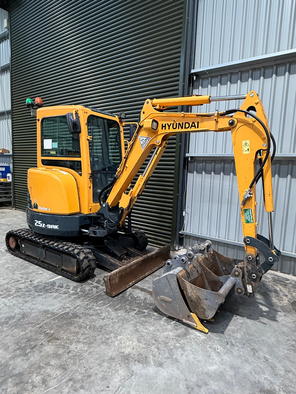Hyundai R25Z-9AK. Year 2021. 1753 hours. Piped for hammer. Quick hitch and 3 almost new buckets. Kubota engine. Cab heater. Two speed tracks. Exact same machine as a Case CX26C which is a Hyundai badged as a Case.