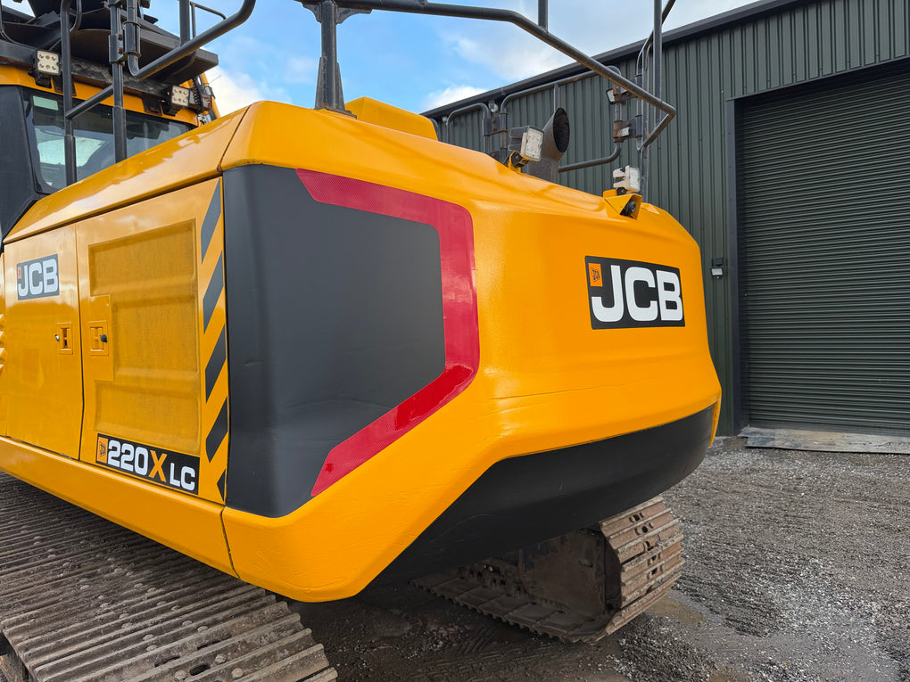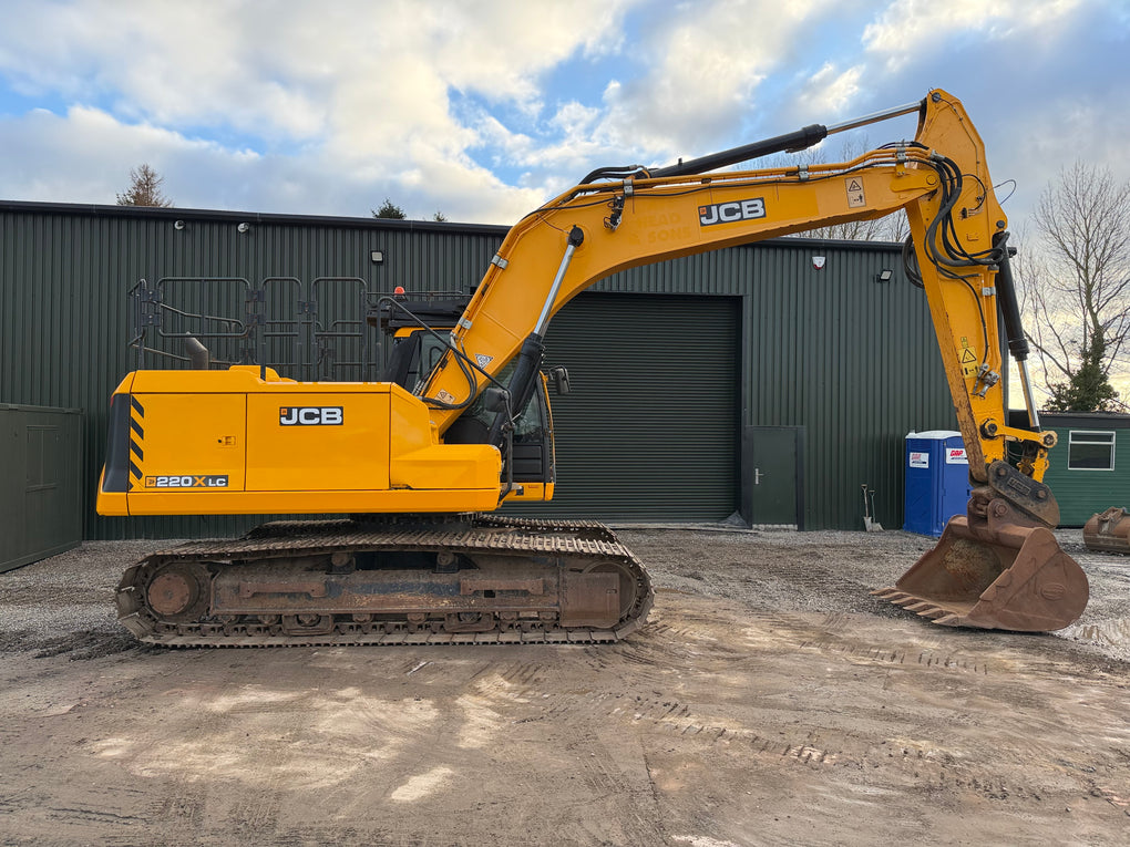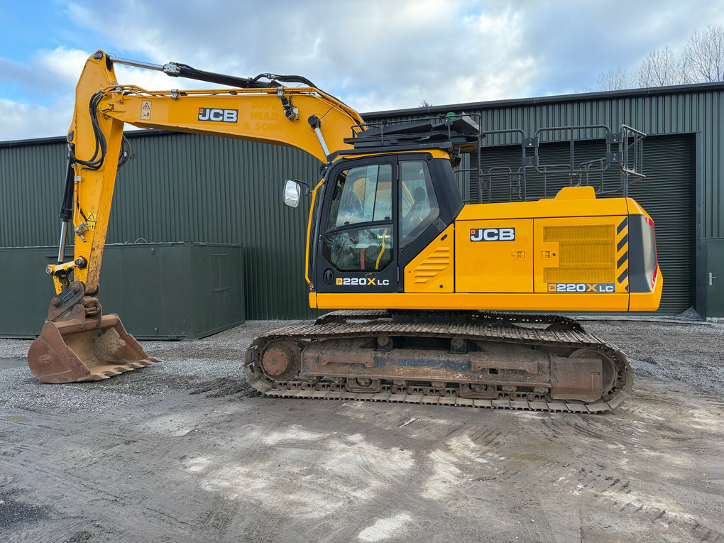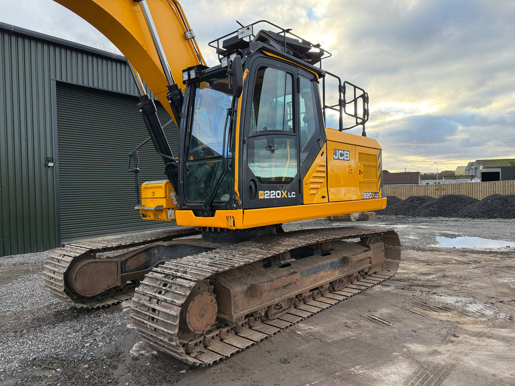 JCB 220X LC. Year 2019. 7099 hours. Safety valves. Piped for hammer. Piped for rotation. Quick hitch and digging bucket. Rear camera. Air conditioning. Boxing ring. Work lights and beacons. Undercarriage 50% good. Tidy machine