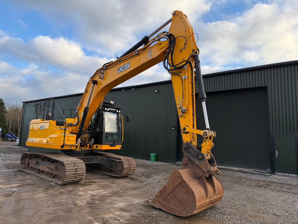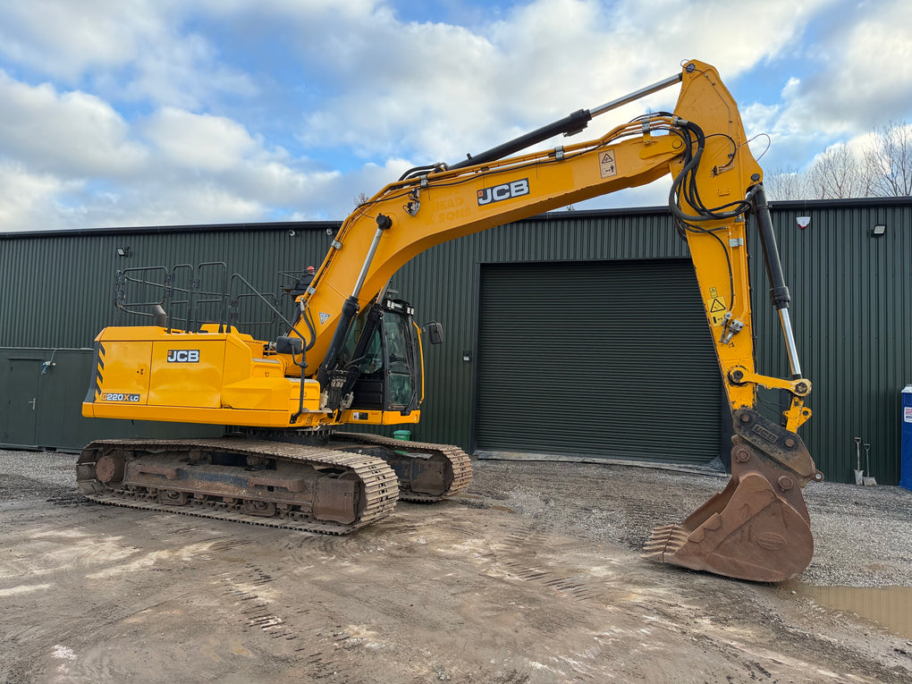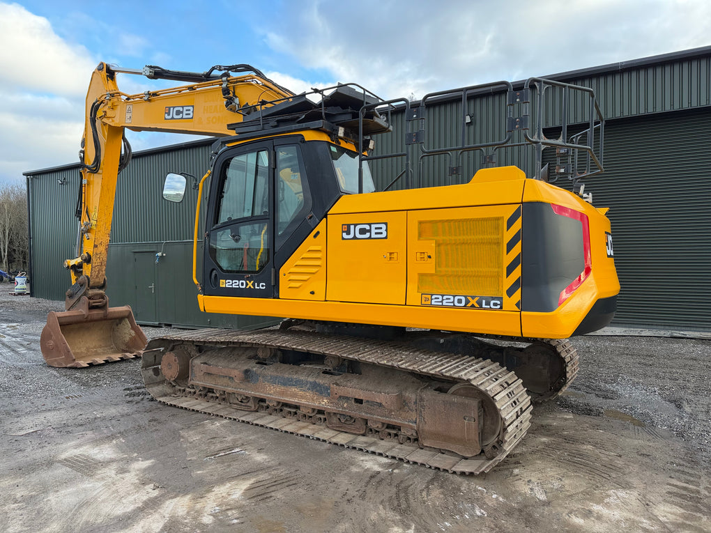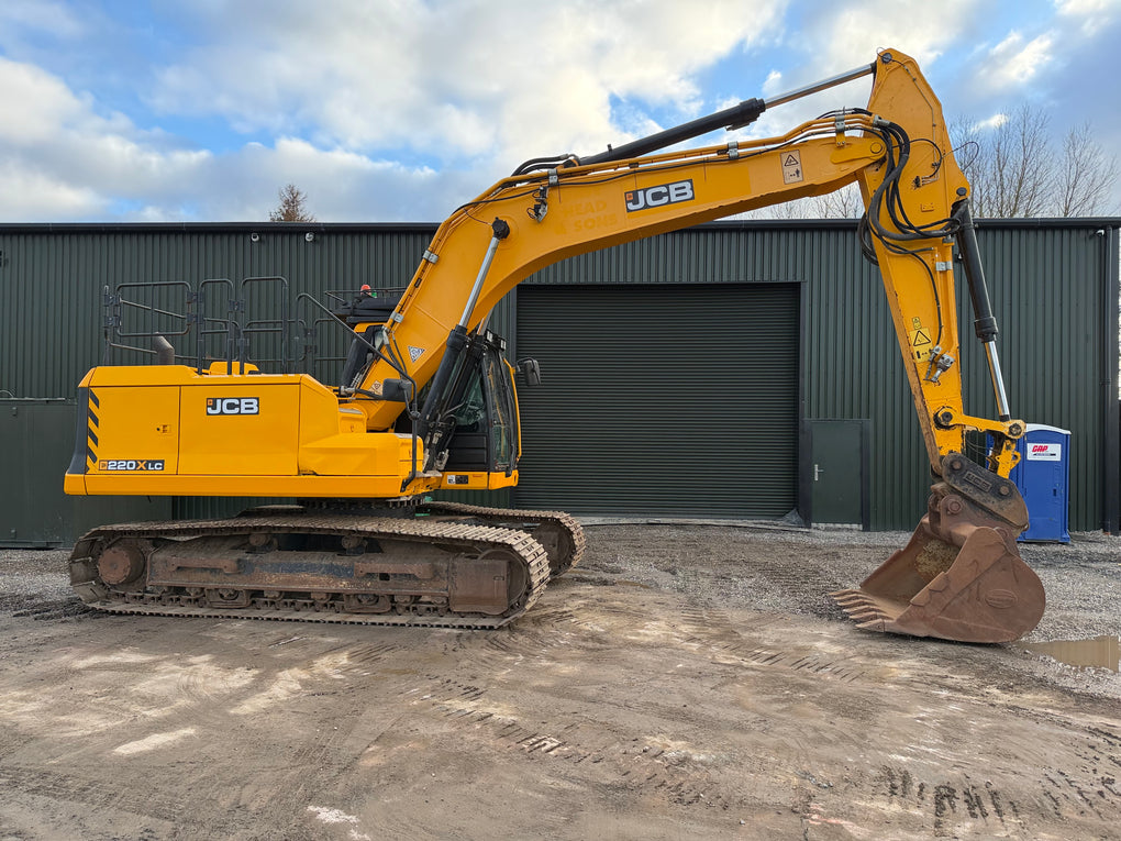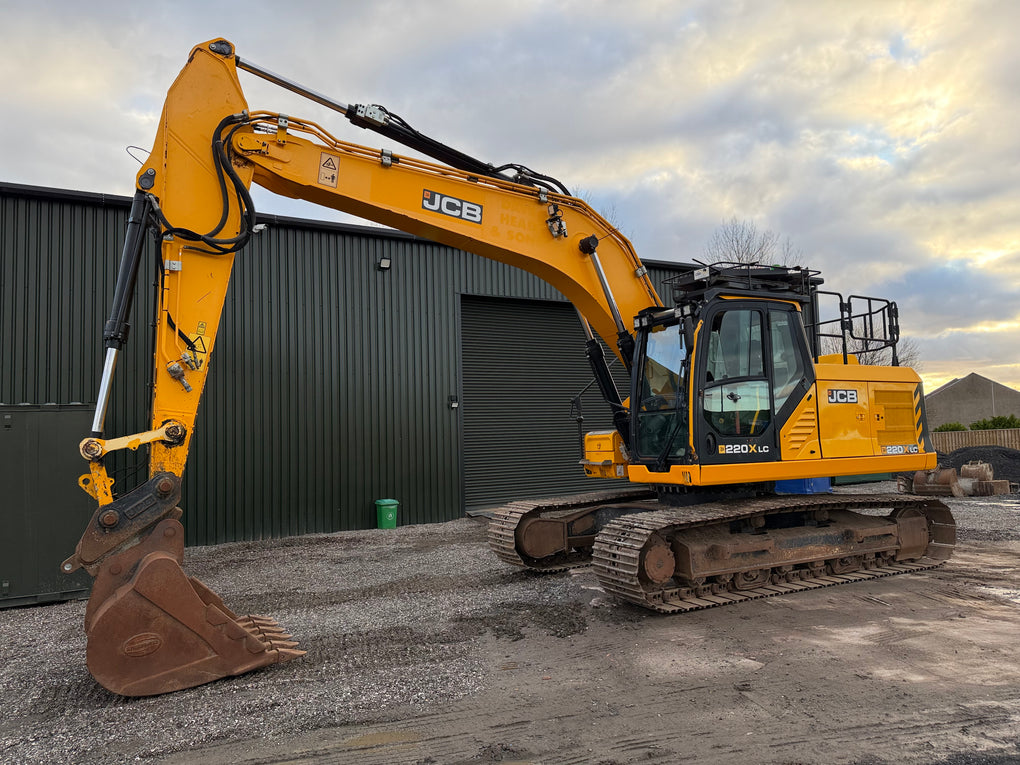 JCB 220X LC. Year 2019. 7099 hours. Safety valves. Piped for hammer. Piped for rotation. Quick hitch and digging bucket. Rear camera. Air conditioning. Boxing ring. Work lights and beacons. Undercarriage 50% good. Tidy machine